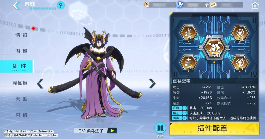 核心插件选择弱点插件,装配弱点插件可对负面状态的敌人造成更多伤害,比较符合暗属性“负面状态”的机制打法。