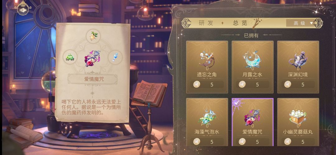 1.遗忘之角(5元)=迷迭香叶+黑魔术花+冷月泉