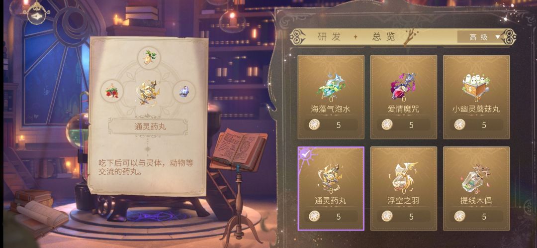 2.通灵药丸(5元)=黑魔术花+曼/德/拉/草+月长石