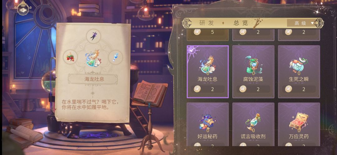 8.海龙吐息(2元)=黑魔术花+渡鸦羽毛+冷月泉