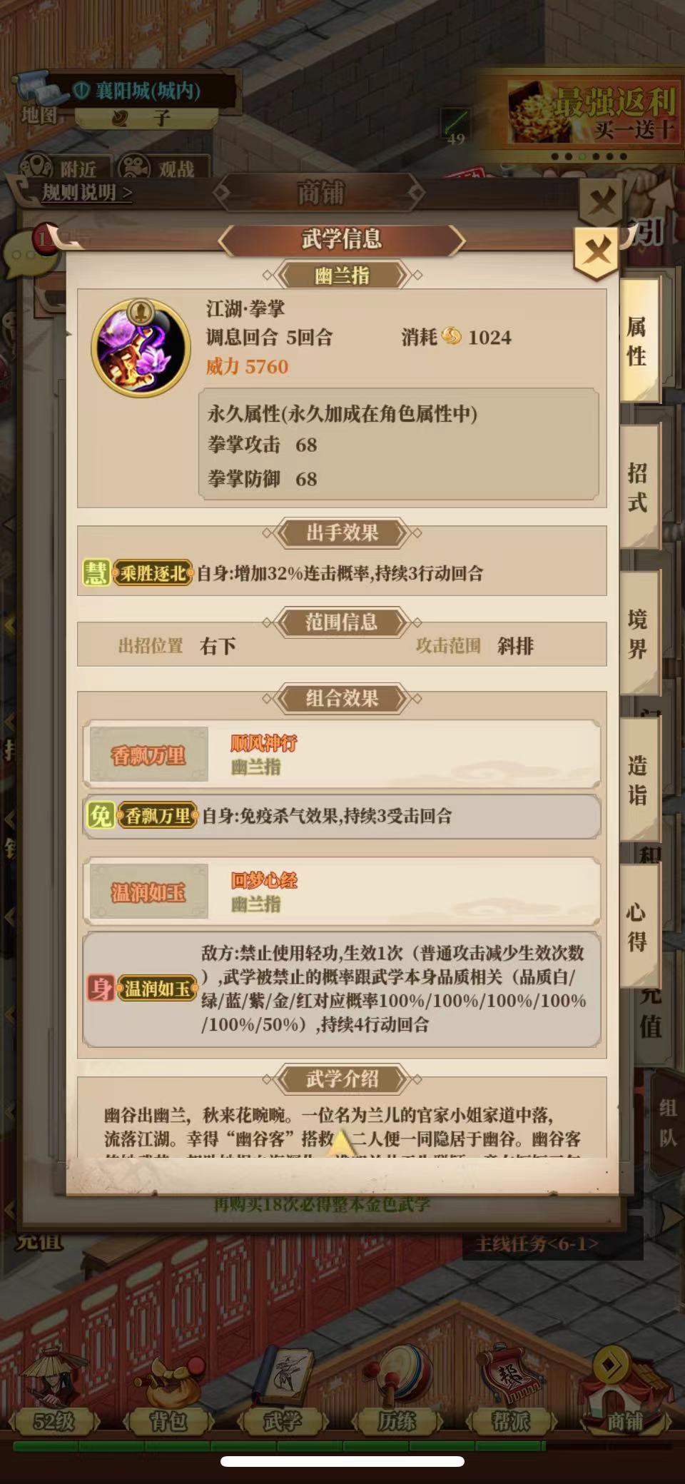 拳:无上手 幽兰指套 主打控制,推荐门派丐帮,拳系中期输出匮乏,所以比较讲究武学排位,封到对方关键技能就是翻盘点