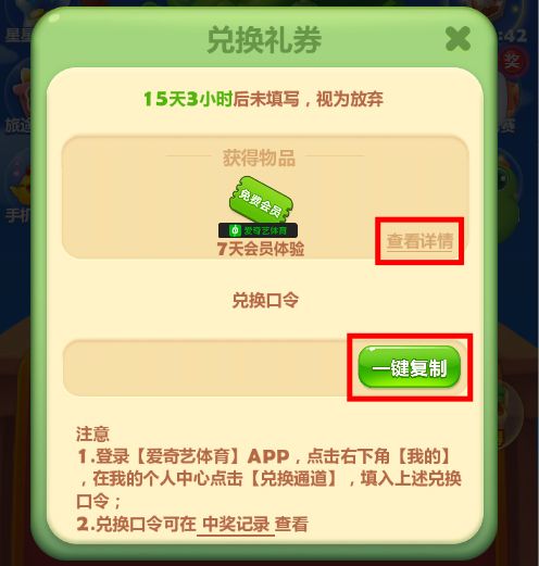 ※温馨提示:点击【查看详情】就会告诉你详细的口令兑换步骤哦(づ ̄3 ̄)づ╭❤~