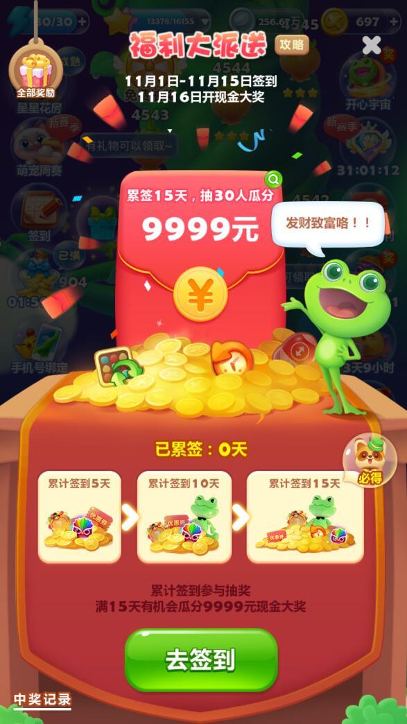 活动期间累签满5天/10天/15天时均可进行一次抽奖,随着累签天数的增多,奖励也将越来越丰富,道具、头像框关卡花、周边以及商家券应有尽有~