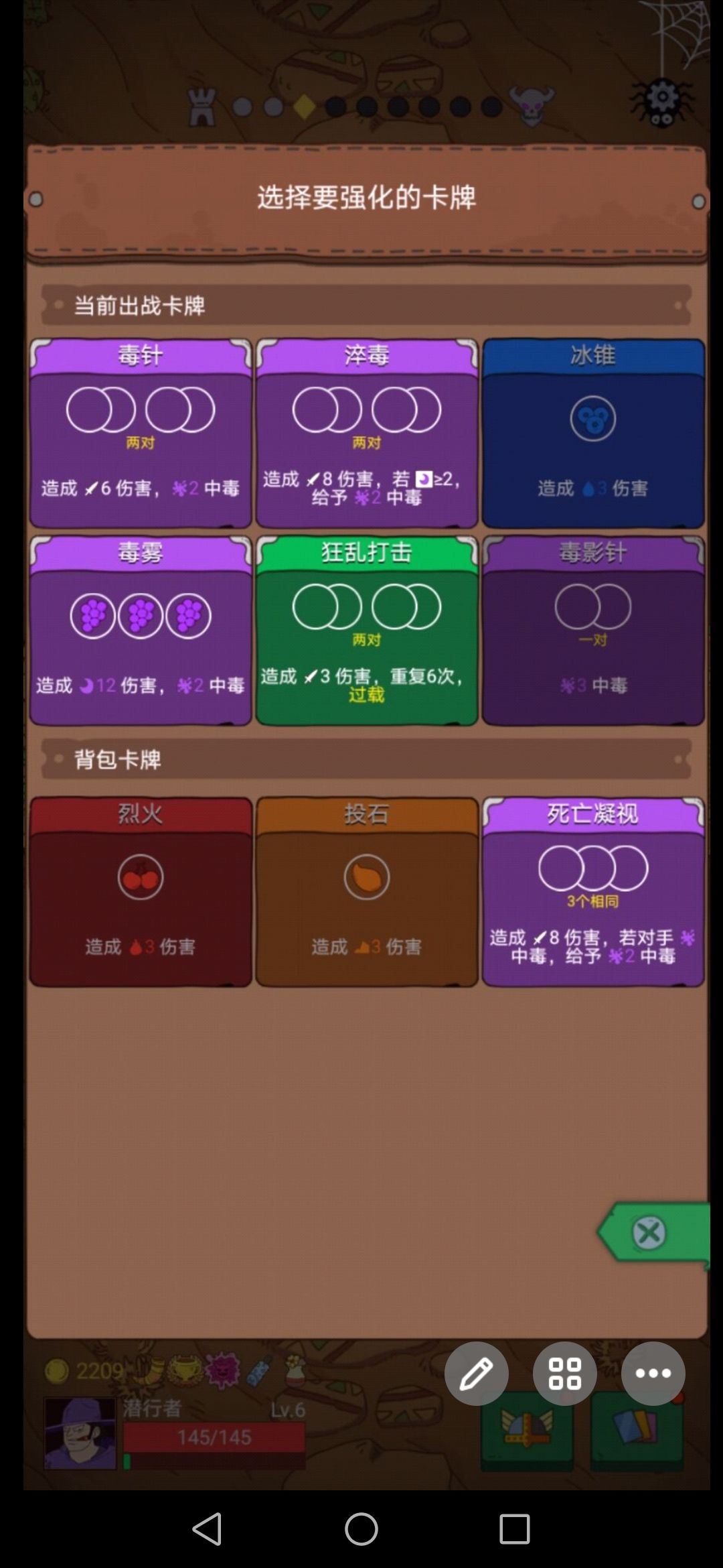 铁匠会随机出现在第4或者第9房间门前,强化6次卡牌.100分,需要1350金币