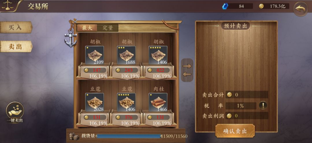 ☞这里简单说一下,我也是第一次做5亿利润任务,做之前我也详细的查询了有关5亿任务的帖子,相比较之下,我感觉还是香辣料更好做,我这个卖出5.2亿,是无需触发免税和吕顺安技能的