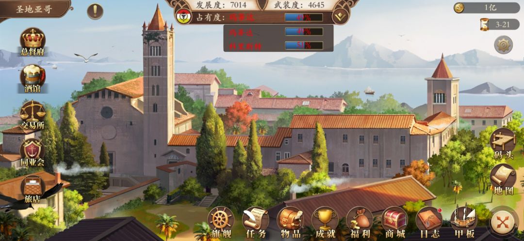 军事投资:和捐献类似,不同于捐献,军事投资只会增加该港口的武装度和占有度,每投资一份那就➕1占有度【这是在该港口没有被占满的情况下才能加占有度的,且用金币投军事投资只为了占有度的话,真的很亏】,提高武装度可以增加新的船只款式和火炮装备,军事投资需要的金钱比捐献少很多【同样的你投资的武装值10天后才会增加上去】