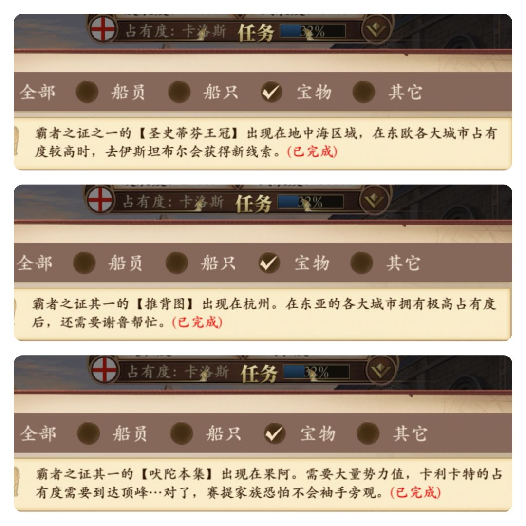 【有人对霸者之证获得的方式有误解,霸者之证的线索里说的全面占有xx港口或者占有度达到顶峰这种的意思确实是让你100%占有该港口,你威压了npc后,他的占有度也是你的,意思就是你在该港口的占有度加上你威压小弟的占有度等于100,就可以开启霸者之证任务,不止是霸者之证任务,任何需要该港口占有度的任务也都可以开启了】
