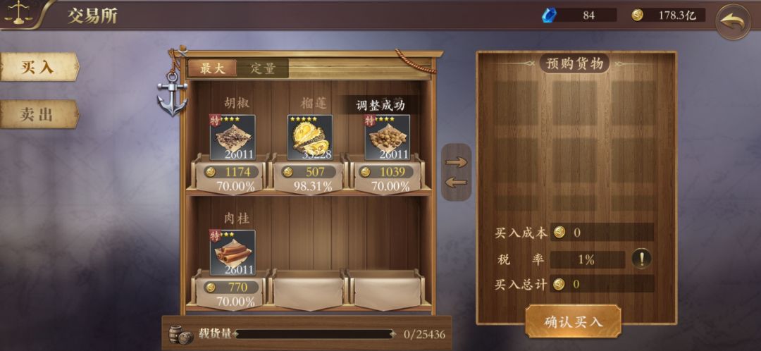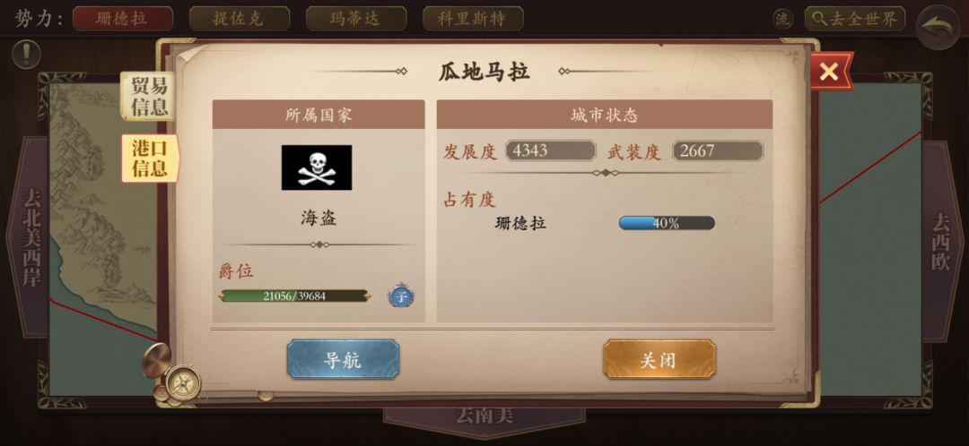 占有度:你在一个港口的占有度越多,你能够在交易所购买的货物也就越多【但不推荐港口100%占有,后面会说】