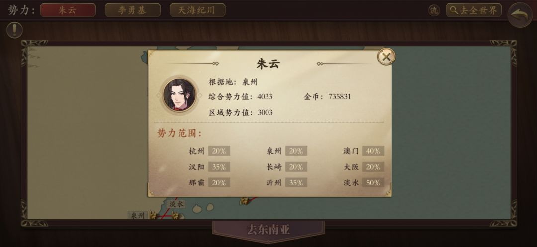 综合势力值:玩家的综合势力值就不想是npc的那个了,玩家的综合势力值代表的是全世界的综合实力值【这其中包括你自己占有的城市占有度,你威压小弟的城市占有度】