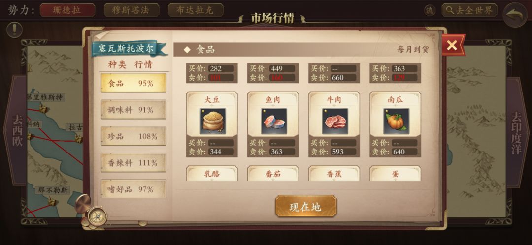 而大的跑商都是以地区为单位,所以攻略中也会频繁提到北欧、地中海的军火,卖到东亚。印度洋、东南亚的香辣料,卖到北欧等等这类的【无他,来钱快,一波肥】