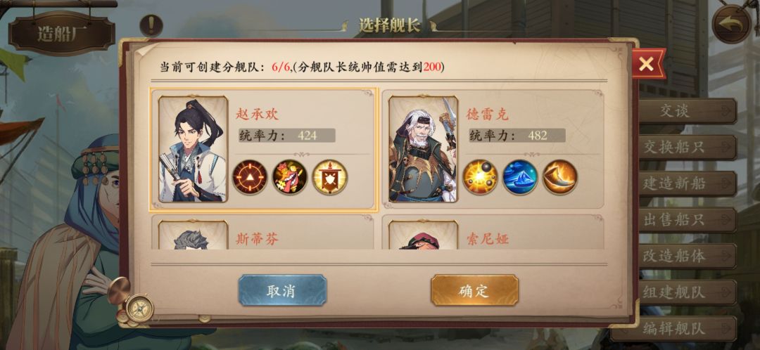 人物可以先从颜思齐和塔伯里面选,反正颜思齐,塔伯,伊迪丝和蕾西娅早晚都要买,商城里剩下的两个船员,都可以从支线任务获得,大可不必买