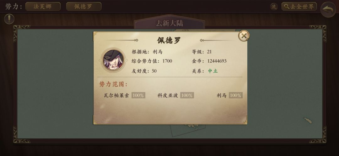 综合势力值:npc的势力值代表他在这个区域的势力,和你能否威压他有很大关系,占有度降低,势力值也会随之降低【后面有补充势力值是什么以及是如何增长的相关信息】
