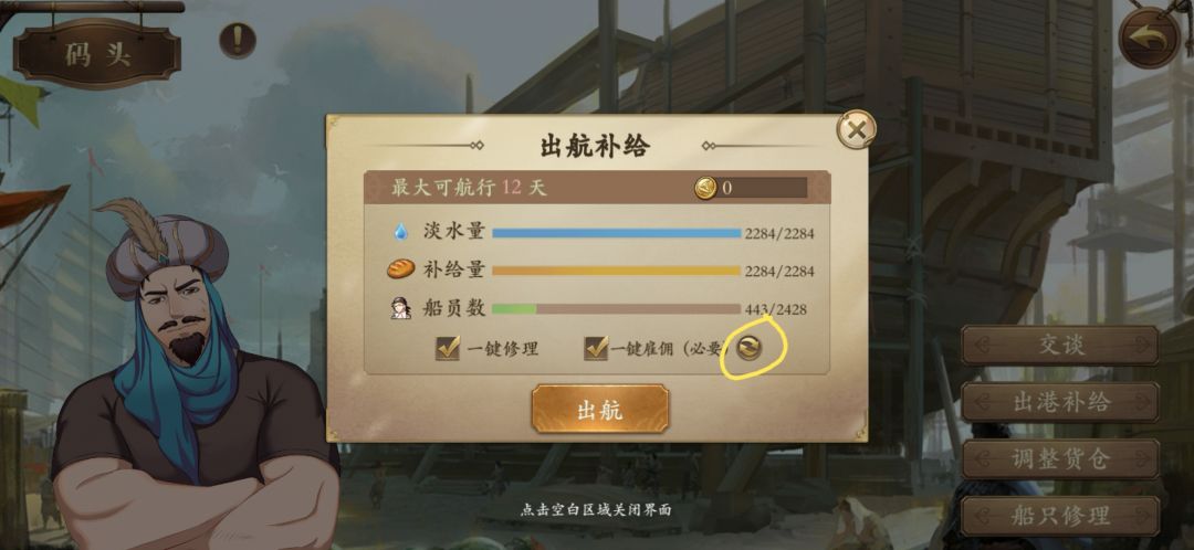 雇佣水手:用于招募、解雇水手【你在这里招募了,你的码头设置没有改,那就是白花钱】