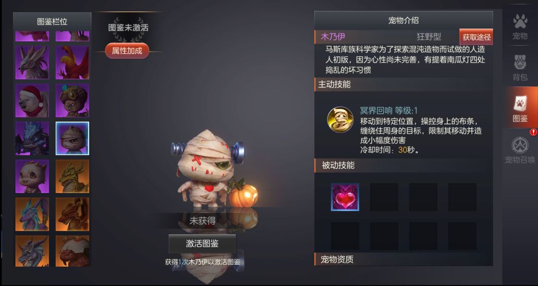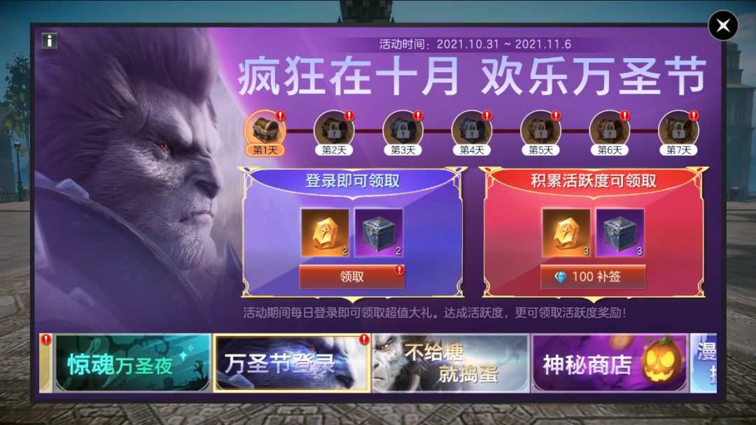 活动期间每日登录即可领取超值大礼,达成活跃度可获得更多奖励,万圣节专属宠物—木乃伊等你来领哦!古堡奇旅: