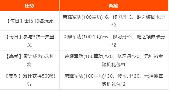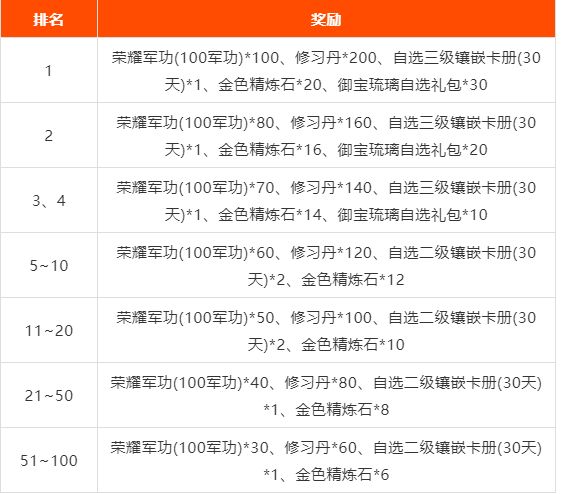 *注:每个荣耀军功中包含了100军功
