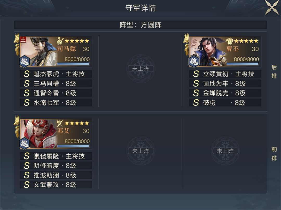 第五章三个关卡的特点都为控制,但都存在站位破绽和坦度缺陷,使用不吃控制的对应武将就能打出不错效果,第三关司马懿的控制效率浮动较大,主公可以多次尝试挑战。