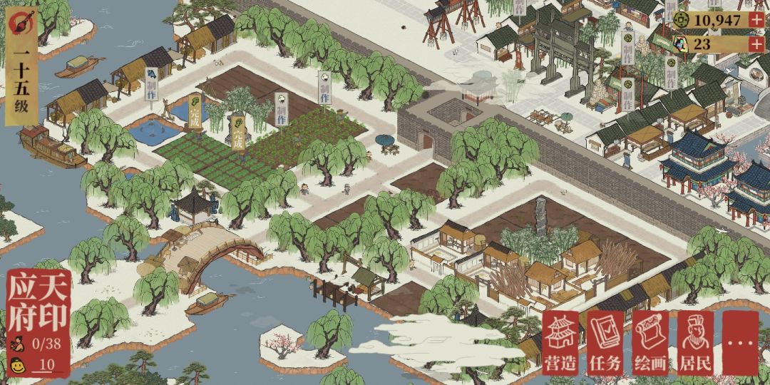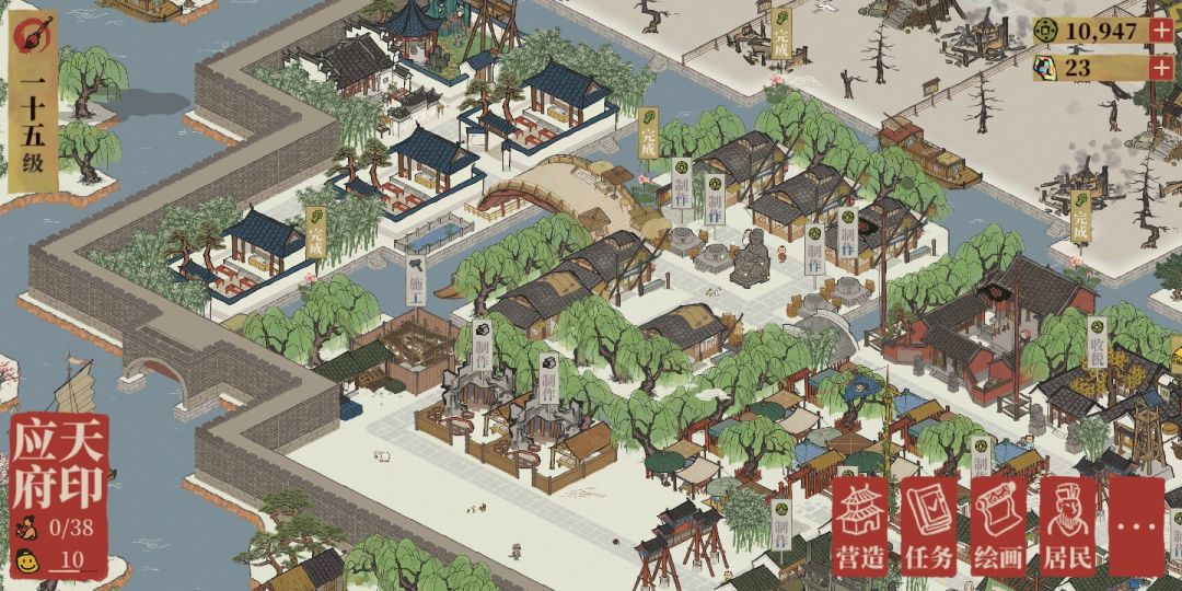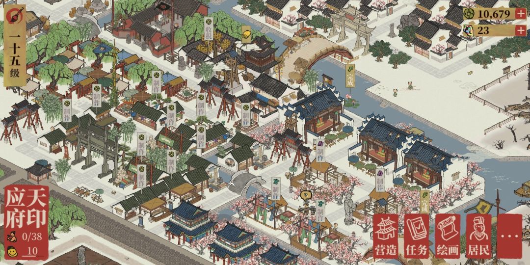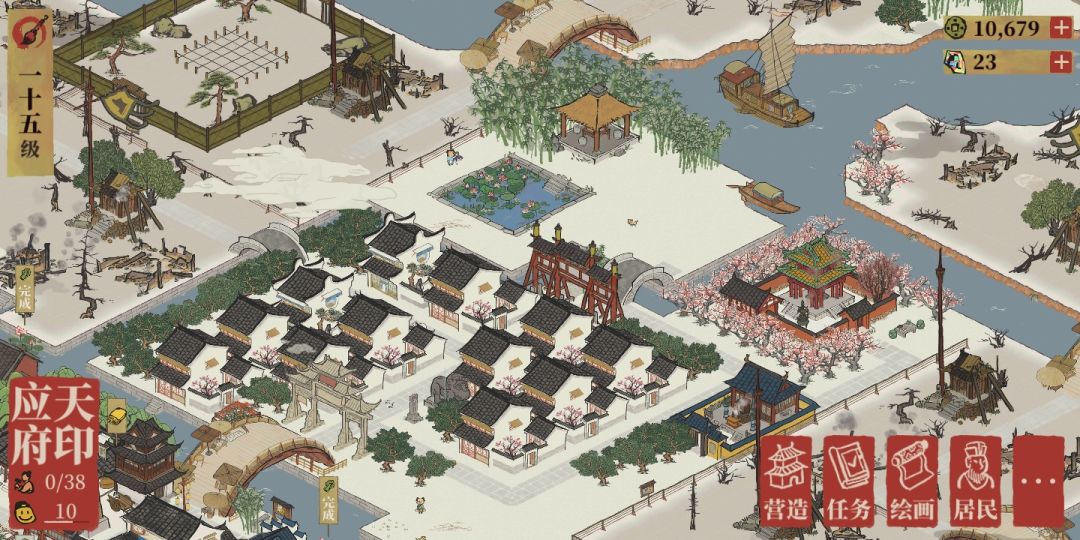 上布局图记录一下,使我布局少费点脑子重新安排。就是有个疑惑的地方,每次和工部官员换了漂亮的景观之后,再造回原来的戏台,琴楼之类的,就感觉繁华度回不去了是怎么回事?难道不应该是上涨吗?还是我看错了呢?最后换好天妃宫到造好其他耗费的景观后,繁华度还不足以让我拥有如今这么多的民居。之前换了玲珑棋局也有这样的问题。(我还额外加了那么多树,却不如没换之前繁华)