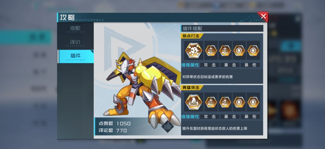 暴击推荐数值(部分数码宝贝自加数值)