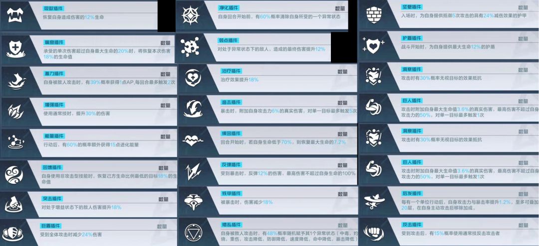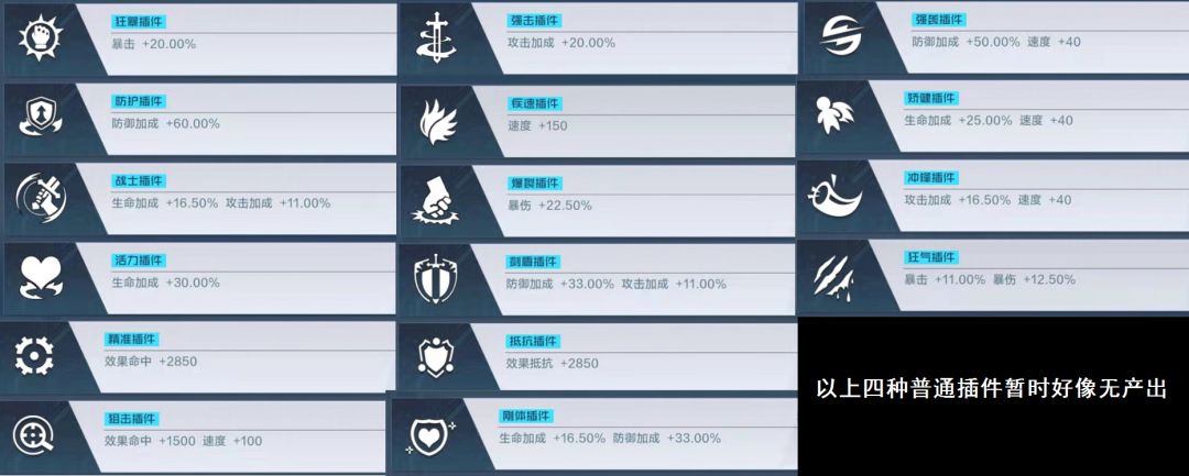 每个插件都会存在四个副属性!SABC分级,这个不过多描述,但副属性存在一定数据浮动,同级不同值,随星级提高