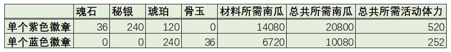 表内数据是从0级拉满到15级需要的材料,其中蓝色徽章升级材料待定。需要计算体力的自行计算。