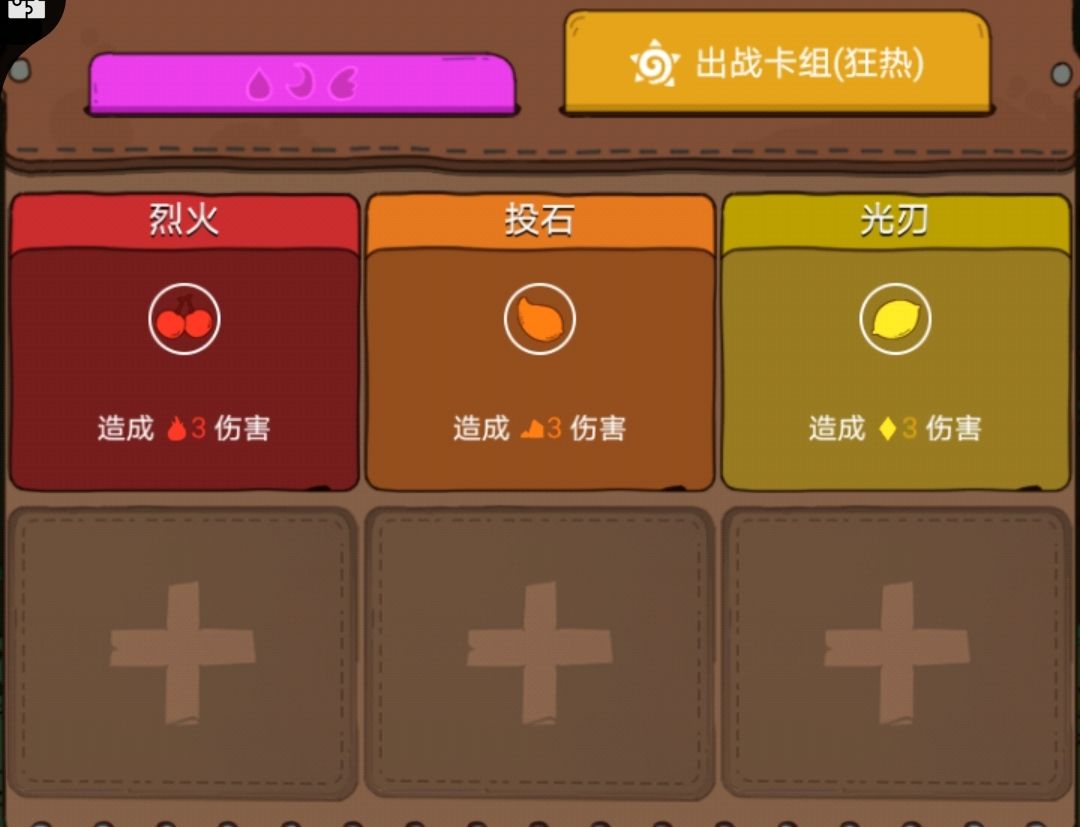 感应者有冷漠和狂热两种形态,两种形态有不同的卡组,冷漠形态只会掷出风水暗三种骰子,所以只能带风水暗元素的卡牌,狂热形态是火土光。而无元素需求的牌,两个形态都能使用,如图: