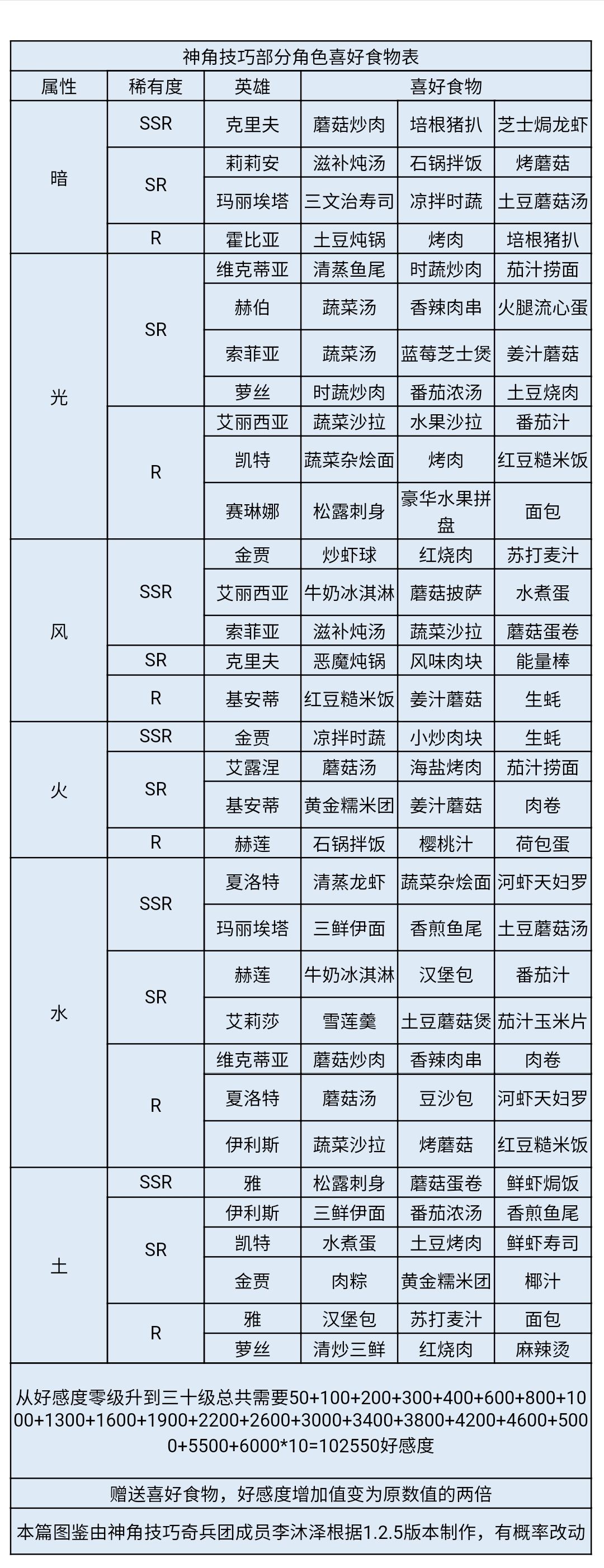 Hello,大家好,我是神角技巧先遣团和奇兵团成员,神角技巧吧主,李沐泽,今天给大家带来四篇攻略,其中有三篇是excel文档,原本还有两篇word文档的,分别是“1.2.5版本与终测版本对比”和“编队推荐”,目前在官方手里,他们修改后会发布。