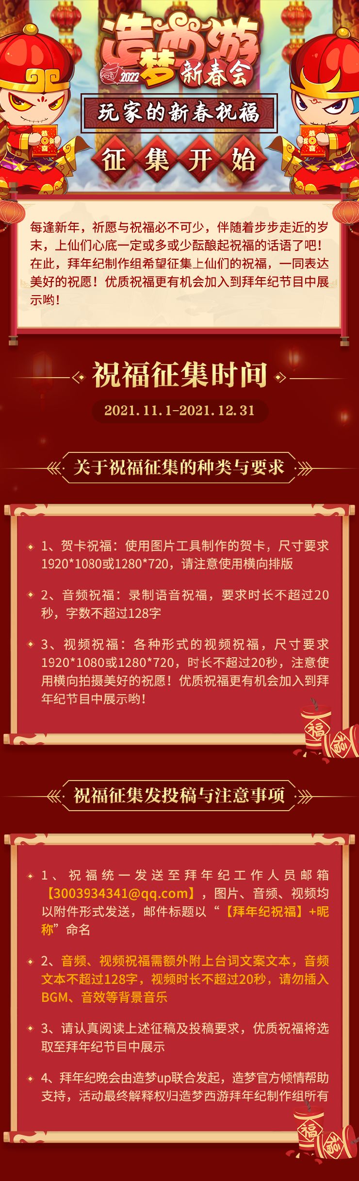 希望各位上仙可以踊跃投稿,优质祝福更有机会加入到新春会节目中展示哟~