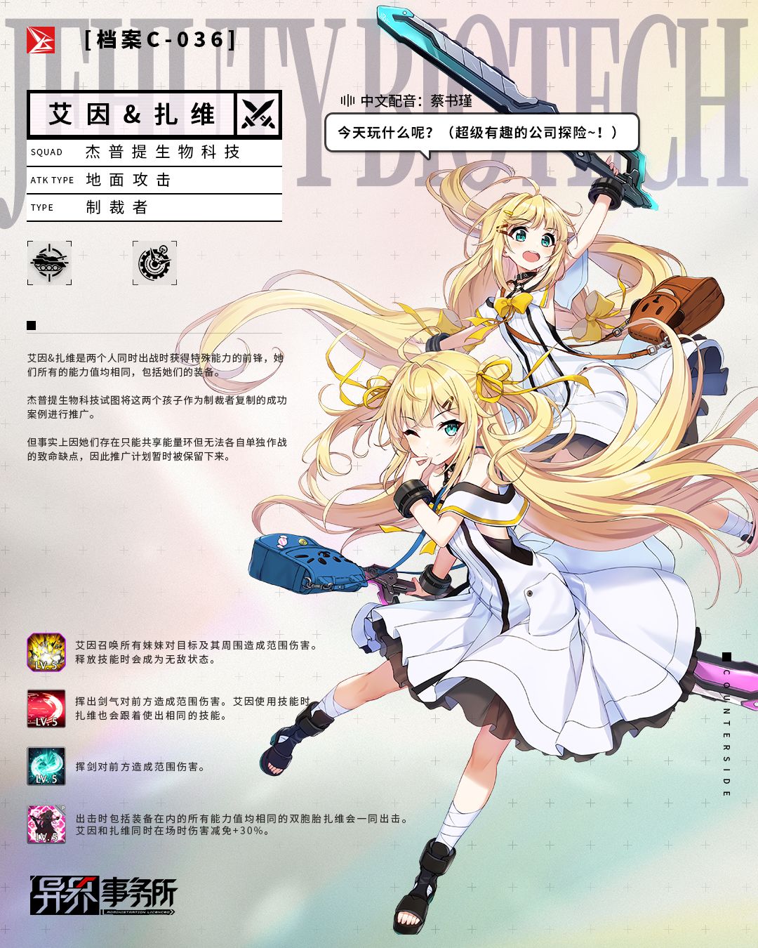 需要特别提到的是,当特殊计划状态达到一定等级时,老板将免费得到全新制裁者「艾因&扎维」!「艾因&扎维」的战斗能力来自同一个能量环,是当她们同时出战时获得特殊能力的前锋型制裁者。