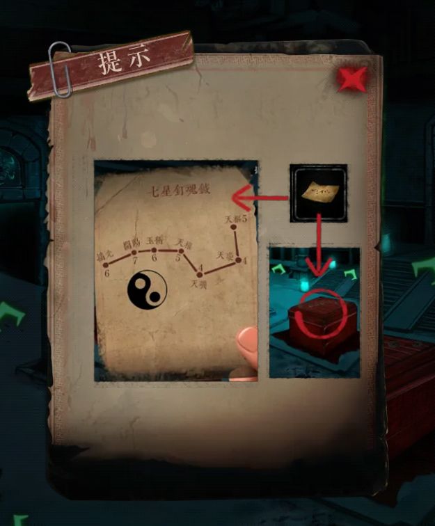 密码线索观察孔内的卦象,等待灯停在与孔中相同的封象下边,然后点封象