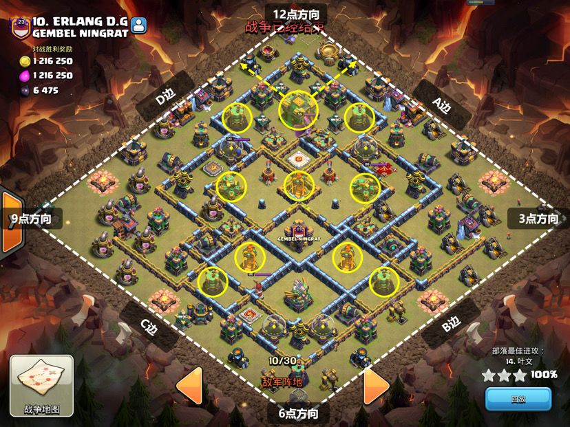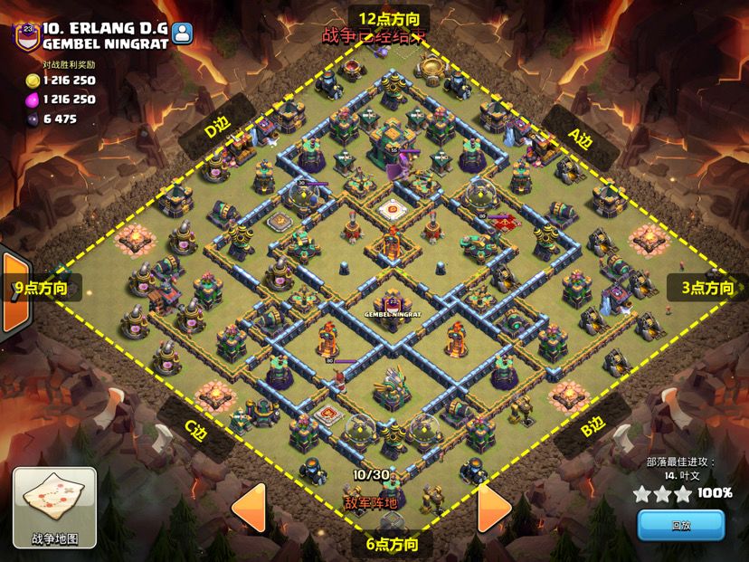 接着再观察AD两条边的防御,蝙蝠惧怕地狱塔、投石炮、法师塔等AOE防御,如果幽灵平推爆本的同时,能带走更多的AOE建筑,就更好了。