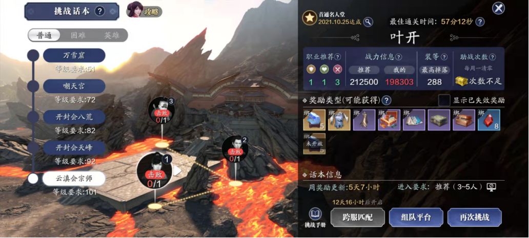官方推荐战力:21.25万,均战19万以上的队伍可尝试挑战。