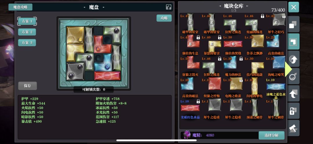 坦度不够的友友们用如下虚无盘(逆时针转两圈俩加移速来跑图)重装坦克用通用天赋 想要加点暴击率提一提穿甲跑图再快就用斧子天赋