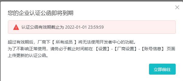 企业认证公函提醒已开启,各位开发者可以开始更新企业认证公函啦!~