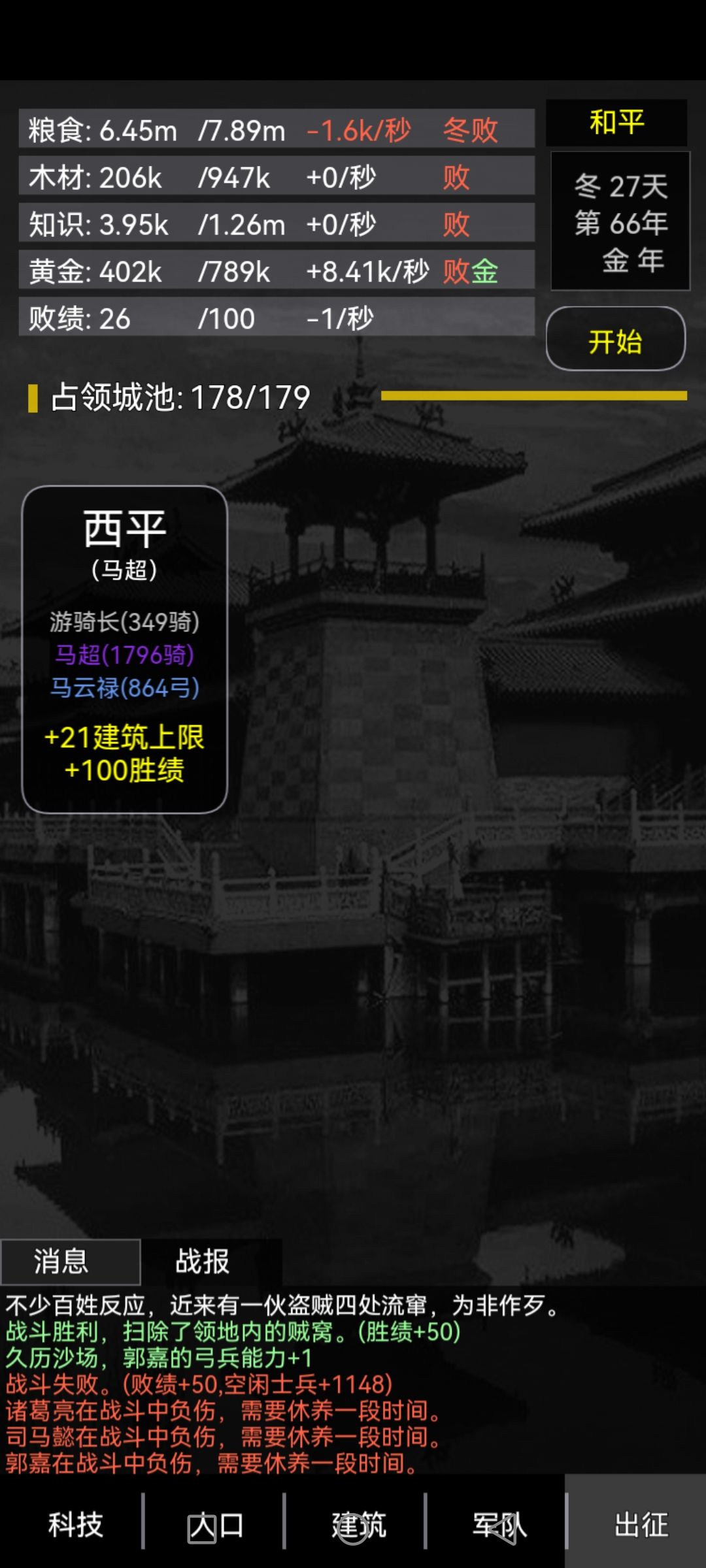 续一下上次的攻略 我又删除了游戏内存 重新开局 也找了个连点器 连点器其实不用编辑那么复杂 能点击和停止就好 要是追求数据 开局速度调到最低 因为游戏限制点击速度 0.5和3产量一样 按年份做事 开局先升果园 有6个人口就可以 先木头再科技 书院40就够 后面附我过关的截图 我这就是靠兵力磨 前期三个吴国骑兵就行 孙策孙坚太史慈 大概5.6的酒馆就可以 主要升级木头 仓库看需求升级 别的东西也是 后面过的关卡都是轮流拿兵力去磨 我的弓兵用的人物有点错误 应该是魏国三个 郭嘉荀彧司马懿 步兵是蜀国 张飞赵云姜维 用兵种克制过关 注意开局找到吴国三骑兵就升级 军备营 和骑兵营 70左右发展第二个兵种 后期三个兵种 后期感觉土年一个春天生产的粮食能吃到下一年 春天 基本就不用开点击了 点击就点粮食和增兵 后期感觉用不用都可以 木头多了就升级点农田 矿场 后期就是木头和招兵 祝大家都能早日摆脱轮回