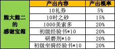 感谢宝箱内资源获得概率,10礼券是10零花钱: