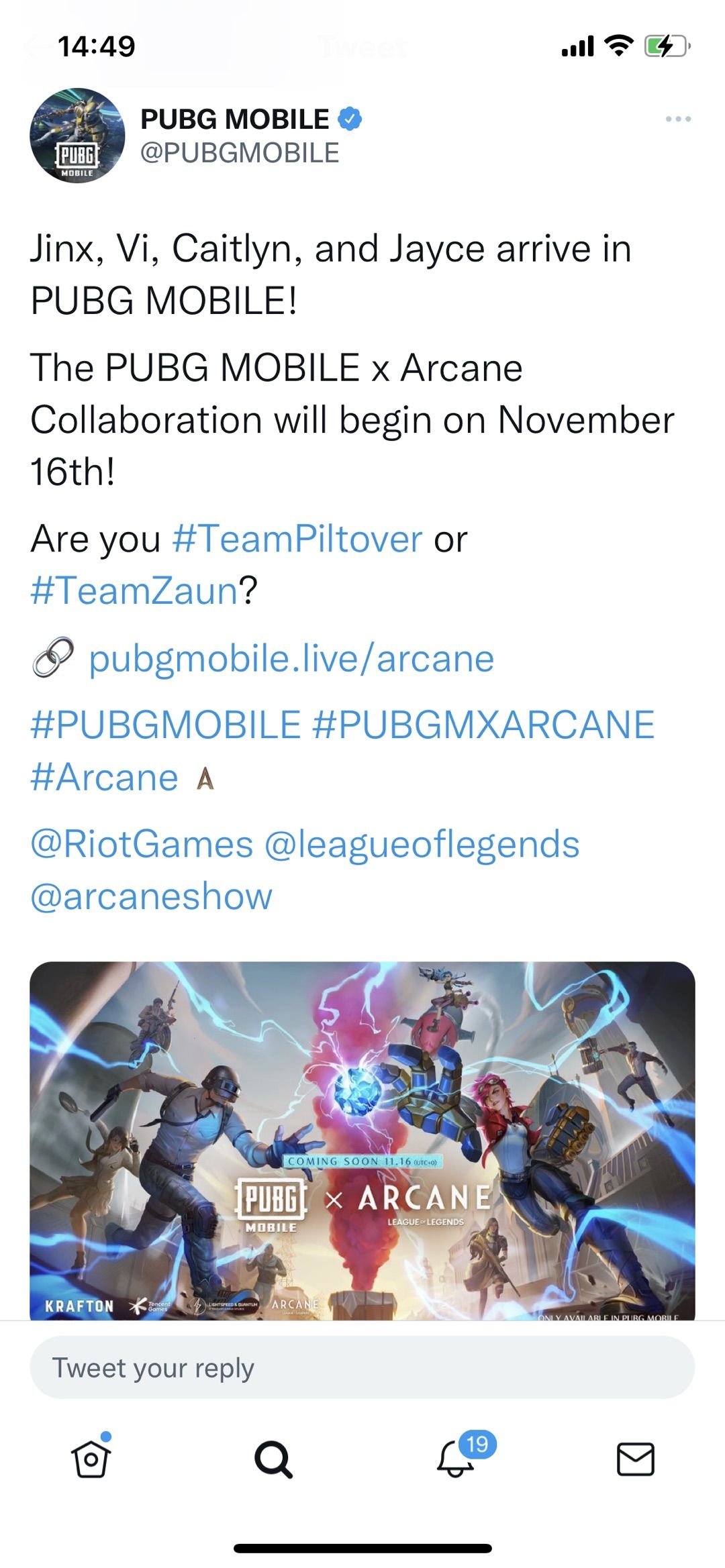 PUBG MOBILE官方发推,金克丝、蔚、女警、杰斯将降临PUBG战场!!