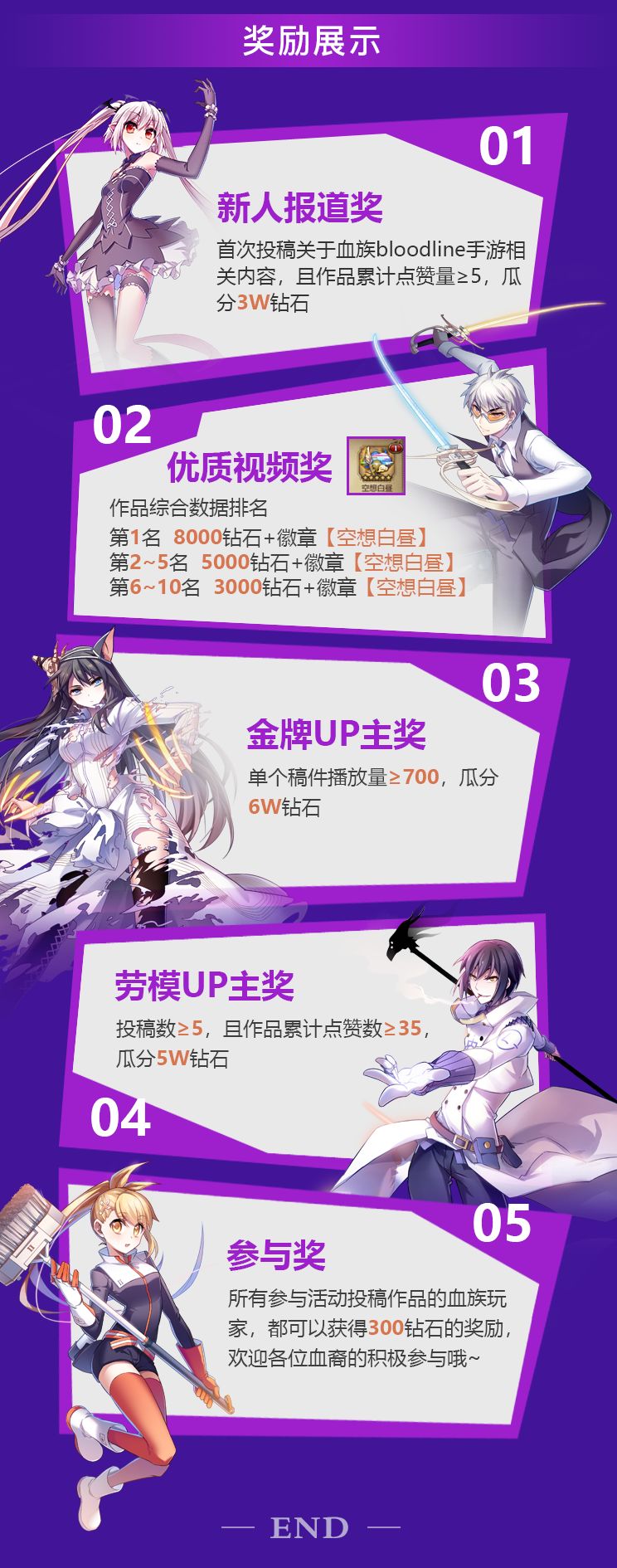 2、奖励会在活动评选结果公布后的7天内发放,如有问题可以联系客服QQ:925521270,欢迎各位血裔们积极参与哦(✪ω✪)