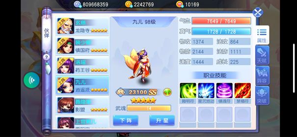 拥有了这五个伙伴,再加上你人物,不管是日常任务,还是单人竞技比武就已经足够了,把其他的积分用来兑换嗅觉之类的还可以养金币更加的容易积攒。
