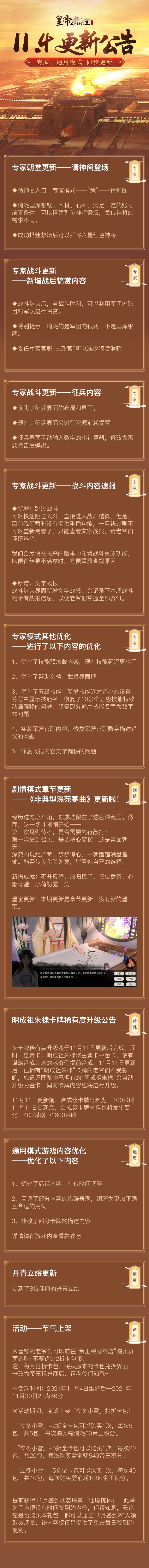 《皇帝成长计划2》11月4日早上07:00进行本周的更新维护,具体内容公告如下(如有变动,一切以游戏内正式公告为准):