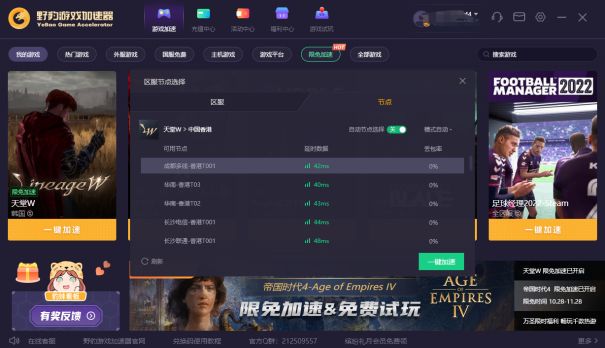 因为天堂W是韩国游戏,由于跨区,使用国内的网络直接进入是不行的,所以是需要开加速器的,推荐使用野豹游戏加速器,官方网站,野豹加速器支持purple客户端加速,以及天堂W的PC端免费加速,即日起到2021年12月2日野豹加速器官方已经开启了超长限免加速SVIP体验。