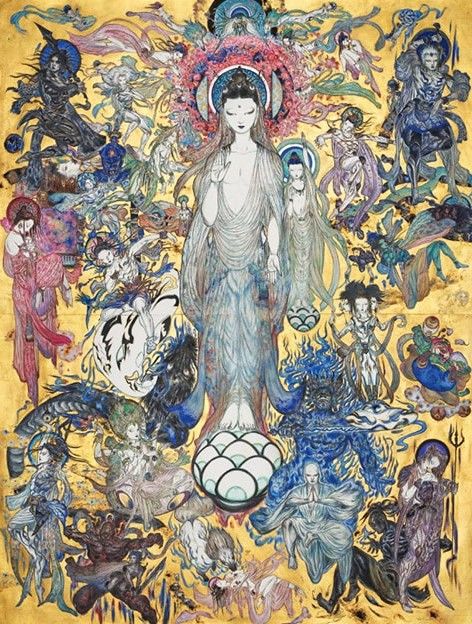 早期《最终幻想》系列御用画师、天野喜孝老师的画风一直以迷幻诡异见长,在日本插画界独树一帜,今年2月时,有眼色高明之人特别邀请天野喜孝绘制了巨幅佛经画,风格完美匹配引发好评,现在原版复刻的周边画作公开。