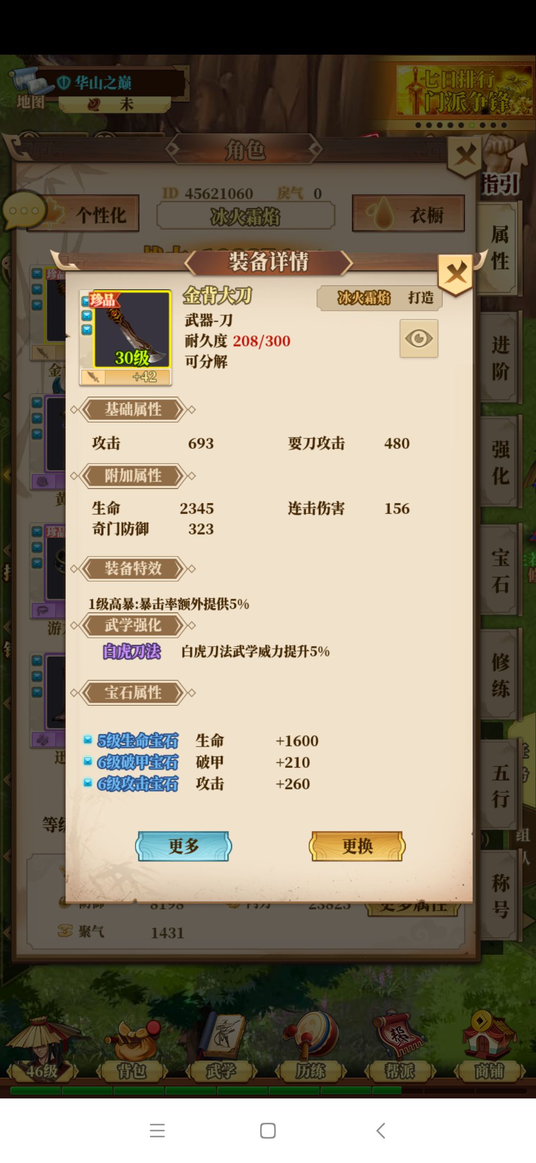 下边是现在用的武器(打造了三把40刀都不如这把好用,黑市的40刀也没这把好)
