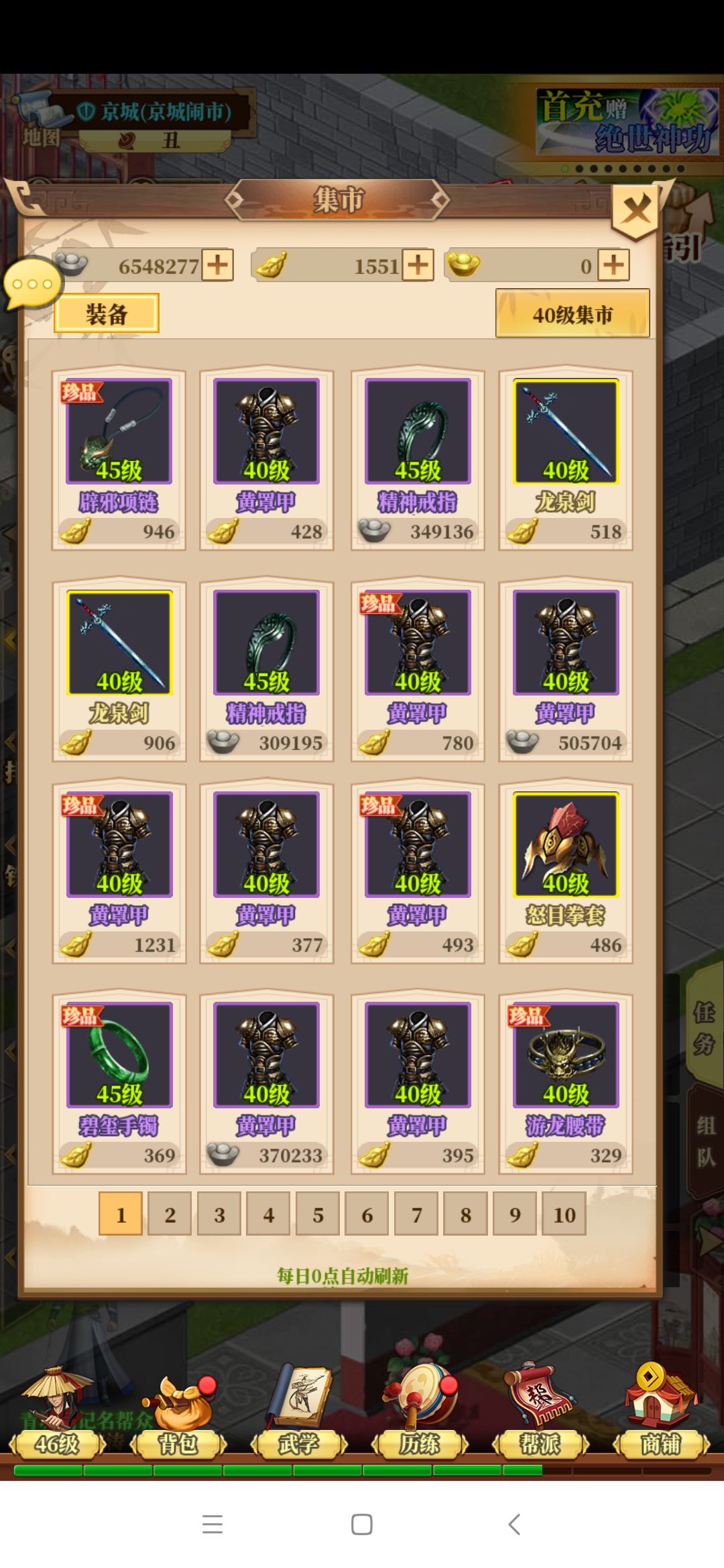 今天玩到第六天才发现京城有一个黑市商人卖装备