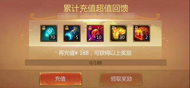 如果大家将必买档1和必买档2的内容全部入手,此时大家的累计充值已经达到了186元,此时可以再充值6元梦三币即可解锁188元档位的珍宝。