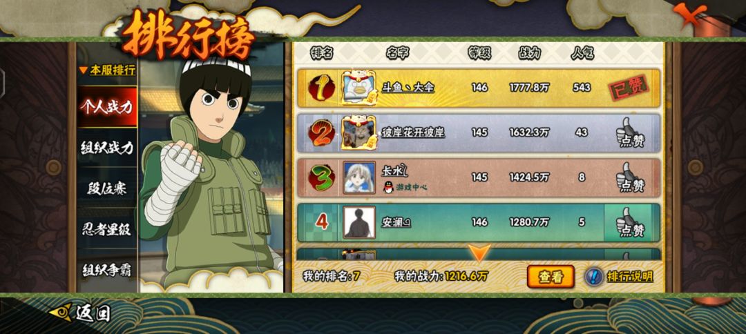 算是一个纯纯的忍者党,战力还能进榜也算是区里面给机会,让我混上来了