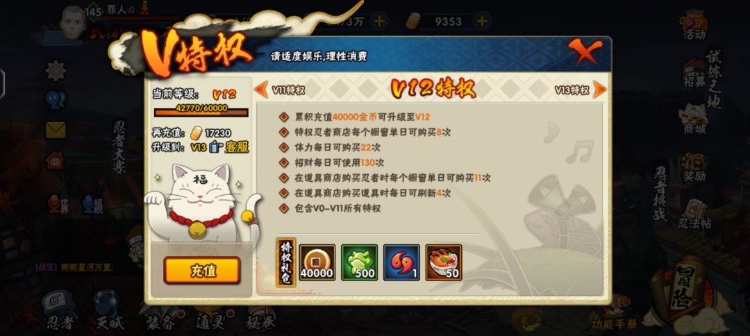忍法帖博文录月卡和超影特权看自身条件