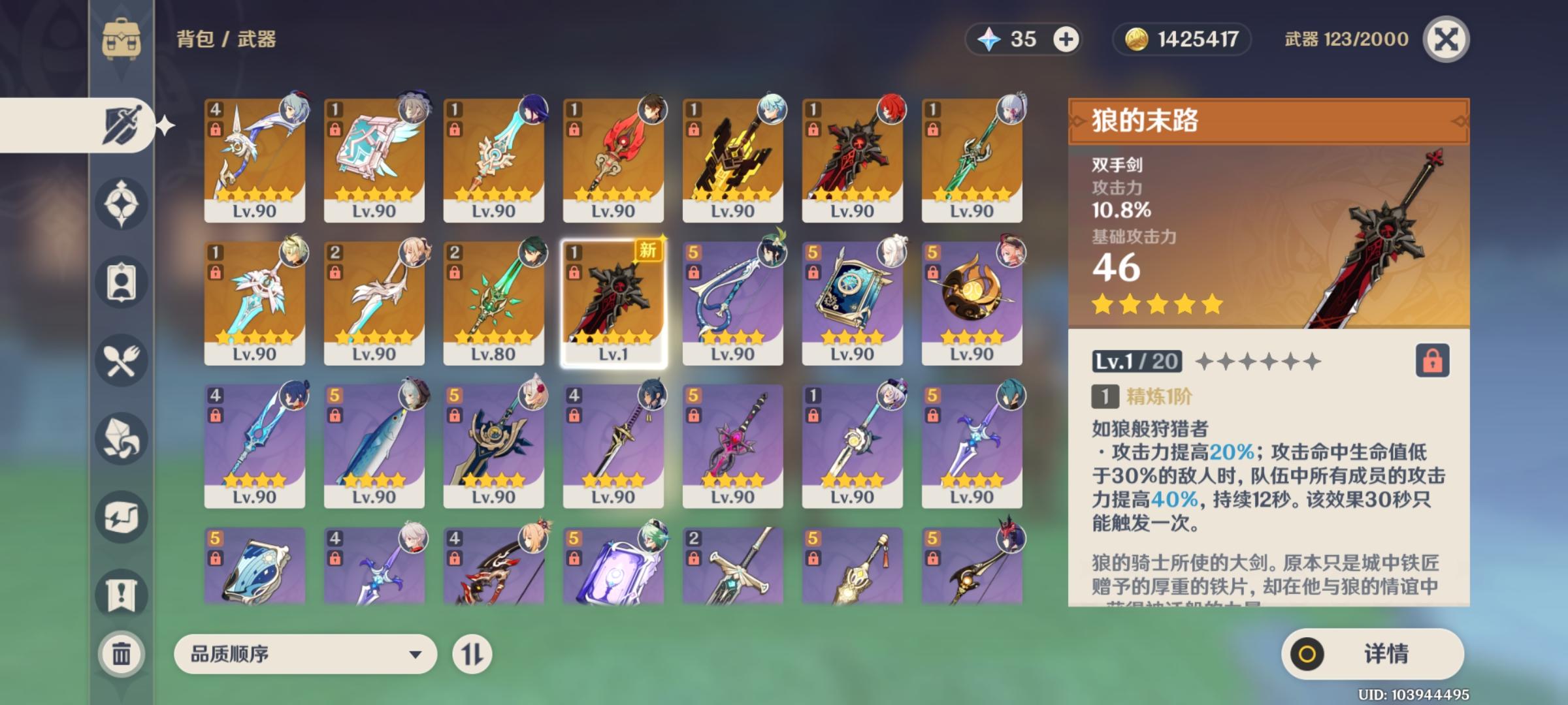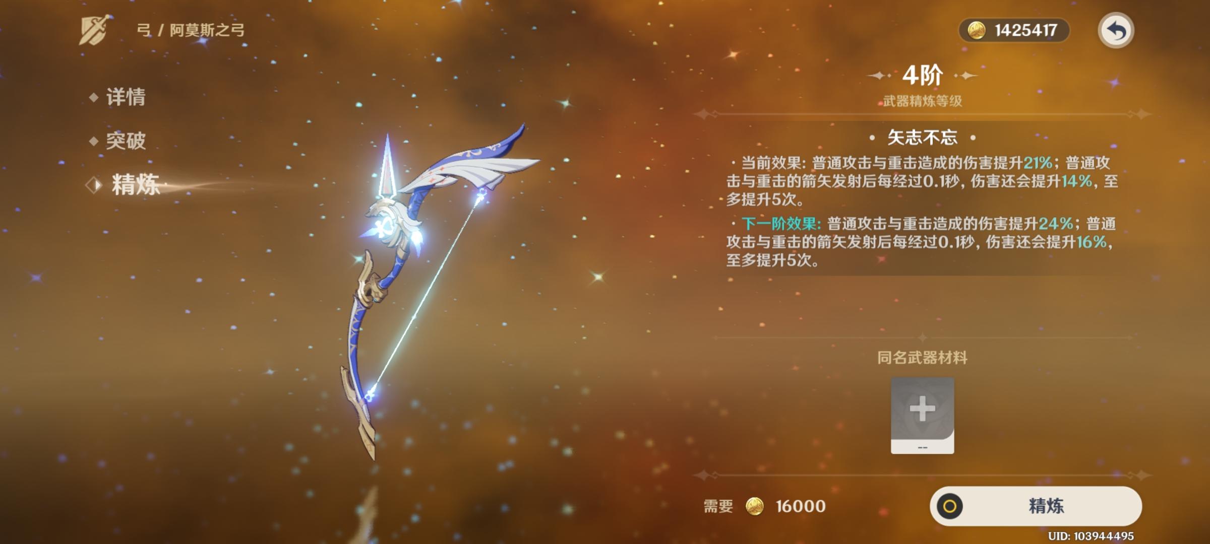 继续抽丽莎,丽莎差一命。今天常驻50又给了一把狼末,我以为阿莫斯会满精炼。不亏我几个月以来,今天玩的时间最久,又是深渊又是邀约的,弄了5抽常驻,喵也满命了,还给了一把大剑,继续攒rp。😁😁😁