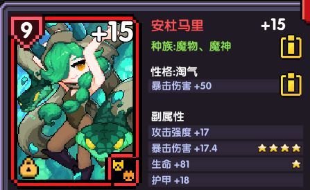 虽然没带冬兵只能吃到一半的属性,但是,灵目游侠非常缺元素伤害,所以4星10%还是可以接受,不过如果猫咪能触发二段伤害加成(世界boss带疯藤的时候),会比冰魔女强一点点