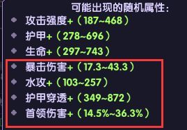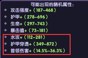 属性选择【穿透、首领、水攻/爆伤】这里推荐选择水攻