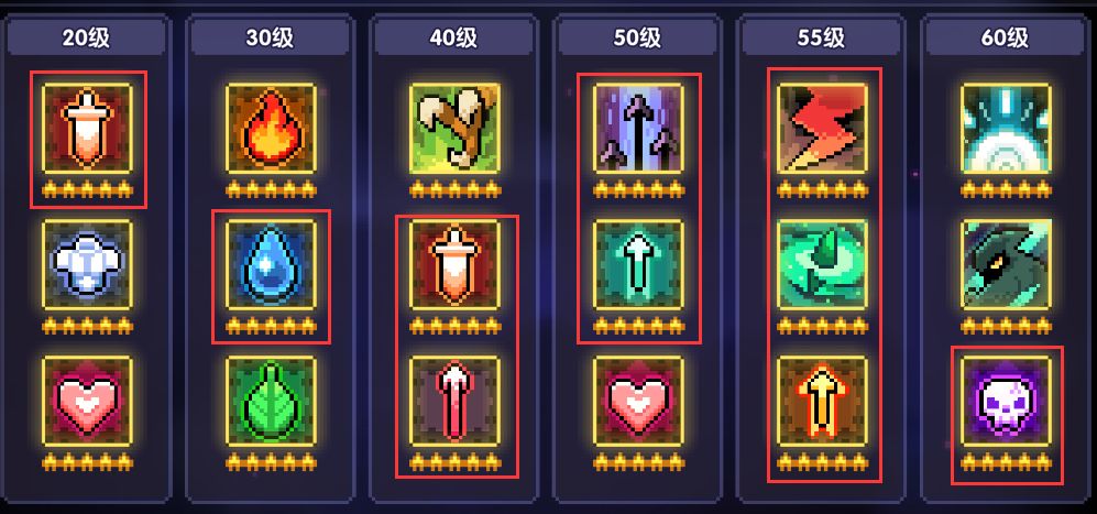 优先红框内的天赋,普攻伤害加成和攻速是非常重要的